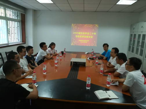 10月3日下午2点,毕业20周年返校聚会校友与学生座谈会在物探楼216会议室顺利举行,侯卫生、罗小波、俞国柱和王传宝等4位校友与部分在校生进行了交流。