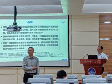 南望山校区-西区物探楼222会议室,以“地震储层预测进展与现状——从叠前地震反演到五维数据解释”为主题,向师生们详细介绍了油气地球物理基础理论、基础软件和前沿技术研究。
