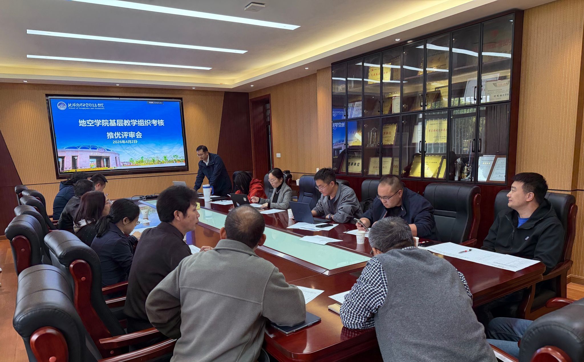 15个基层教学组织,各负责人汇报教学运行、教研活动、师资培养、教学成果建设等核心工作。评委认真听取汇报、查阅支撑材料,经综合评议与现场投票表决确定考核等次。
